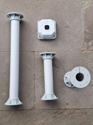 - Dəstdə müxtəlif uzunluqda düz borular, montaj üçün flanşlı keçidlər və “LOTUS” yazılı divar rozetka qutusu var.