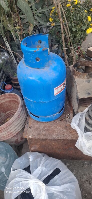 Mavi rəngli məişət qaz balonu - Tip: LPG (propan‑butan) üçün metal balon - Həcmi: standart ev tipli (təxmini 27–50 litr kateqoriyası; soba, manqal, kamp ocağı və s. üçün uyğundur) - Korpus: qalın ...