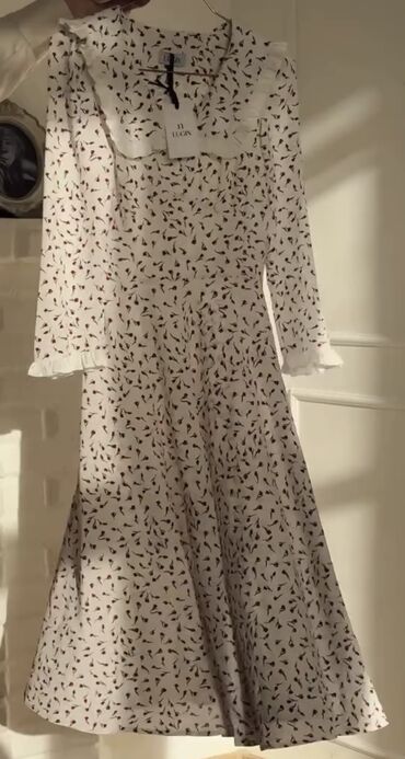 Ağ rəngdə, qara xallı qadın paltarı. -20 AZN