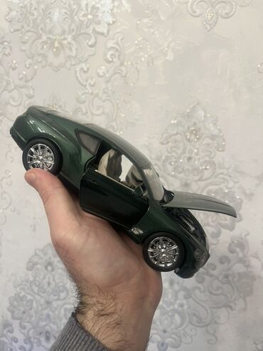 Metaldan kolleksiya modeli – yaşılımtıl tünd rəngdə lüks kupe avtomobil maketi
