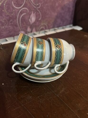 Çay dəsti, rəng - Qızılı, Farfor, 6 nəfərlik, Polşa
