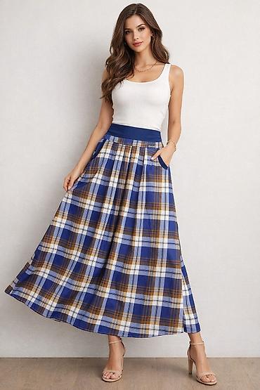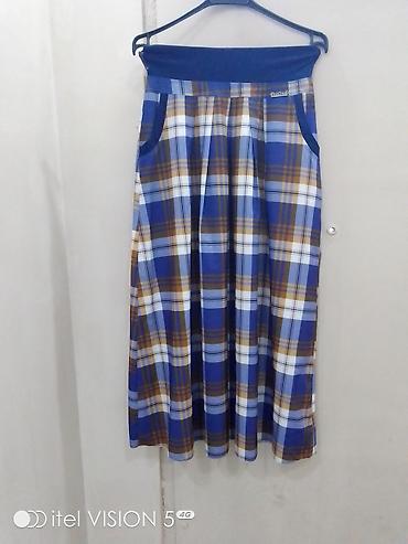 Qadın yubkaları – klassik qatlalı model. Turkiye istehsali - Rənglər: elektrik-mavi və şaftalı - Dizayn: bel hissəsində enli kəmər, ön və arxa hissədə dərin büzgülər/qatlar - Uzunluq: midi - Bağla...