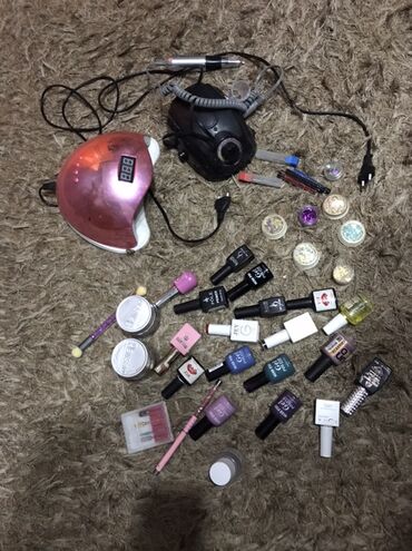 - Gel-laklar və örtüklər: müxtəlif brendlərdən müxtəlif rənglər (mavi, yaşıl, bənövşəyi, nude və s.), baza, top, primer və yağlar.