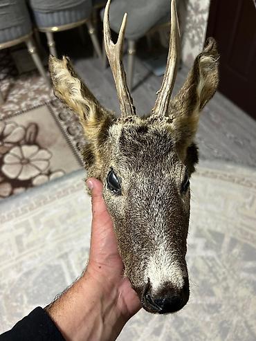- Real taksidermi baş trofeyi: təbii xəz, dəri və buynuzlar qorunub saxlanılıb