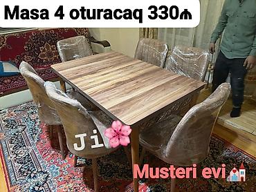 - Komplekt: 1 ədəd düzbucaqlı masa + 4 ədəd oturacaq
