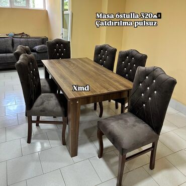 Qonaq otağı üçün, Yeni, Açılmayan, Dördbucaq masa, 6 stul