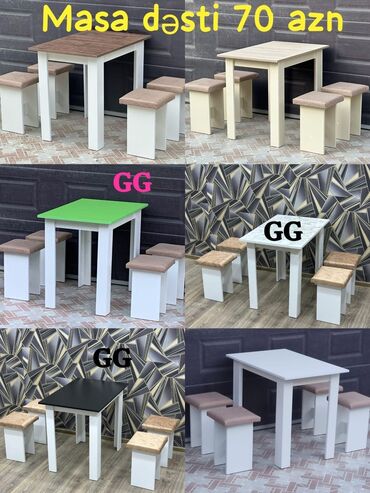 Qonaq otağı üçün, Yeni, Açılmayan, Dördbucaq masa, 6 stul