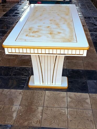 Masa və 6 ədəd stul dəsti – 650 ₼ - Dəst: 1 ədəd geniş yemək masası + 6 ədəd stul - Stil: Klassik-modern dizayn, qızılı dekor detalları - Masa: Şüşə üstlü, çoxbucaqlı forma, zərif haşiyə - Ayaqlar...