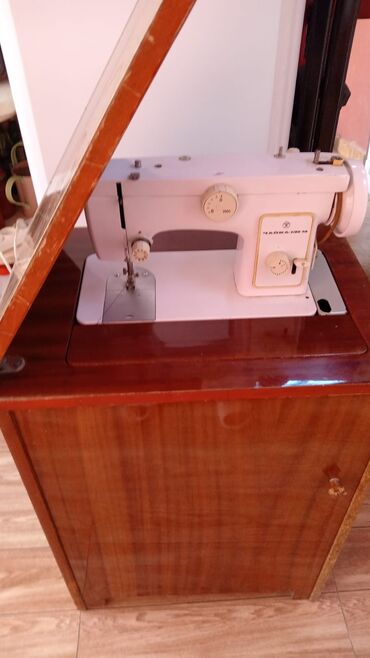 Məhsul: Tikiş maşını kabinetlə birlikdə Təsvir: - Elektriklə işləyən mexaniki tip tikiş maşını - Üst hissədə sap çarxları üçün yerlər və bir neçə tənzimləmə düyməsi (sıxlıq, tikiş uzunluğu və s.) ...
