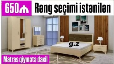 Yataq otağı dəsti – 650 AZN Rəng seçimi istənilən. Matras qiymətə daxildir. Dəst tərkibi: - İki nəfərlik çarpayı (yumşaq başlıqla) - 3 qapılı dolab, ortada güzgü paneli - Tumba (2 ədəd) - Komod və...
