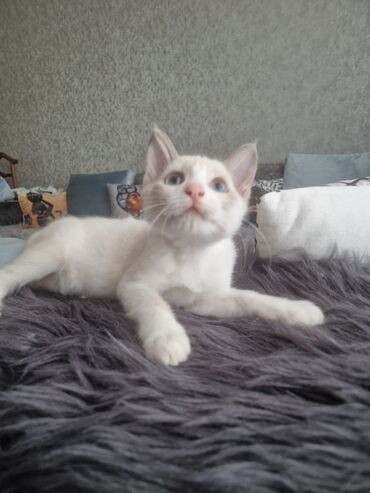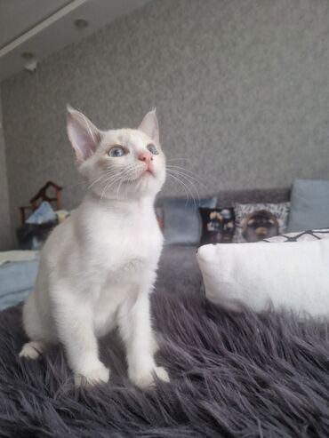 Siam rəng palitrasına malik gözəl ev pişiyi - Cins görünüşü: krem rəngli bədən, tünd qulaq, burun, pəncə və quyruq ucları ilə klassik “color‑point” (Siam tipli) rənglənmə. - Gözlər: böyük və ifadə...