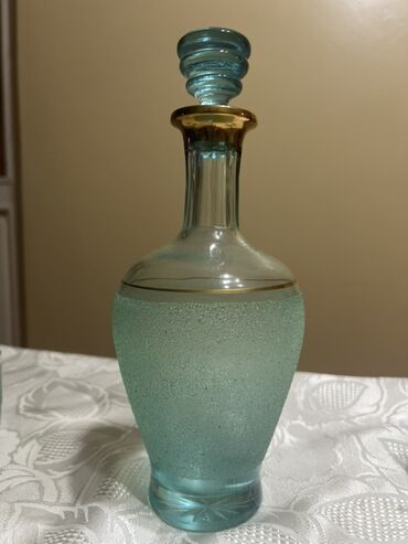 Mavi şüşə qrafin və 5 qədəhdən ibarət dəst - Material: qalın şüşə - Rəng: dumanlı mavi, şəffaf detallar və qızılı vurğular - Qrafin: klassik formalı, yan tərəfdə rahat tutacaq, üstü kristalvari şü...