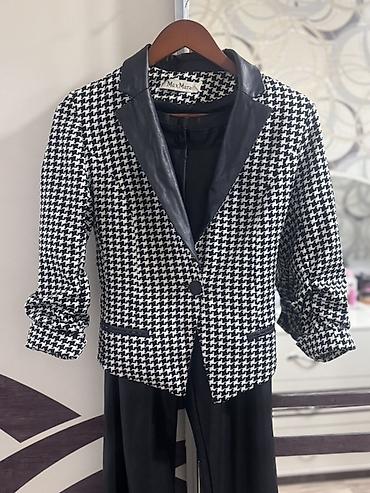 Qadın geyim dəsti 1) Zolaqlı kəmərli don - Rəng/naxış: tünd göy və bej zolaqlı (animal print effekti) - Model: dizüstü uzunluqda, V-yaxa, uzunqol - Material: yüngül, axıcı parça - Detallar: eyni p...