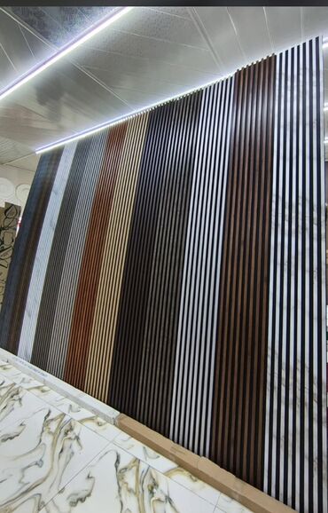 - Dizayn: Şaquli lamel teksturası ilə modern akustik görünüş. Ağ, qara, boz, ağac naxışlı (açıq palıd, qoz, tünd ağac), mərmər effekti və qarışıq rəng kombinasiyaları.