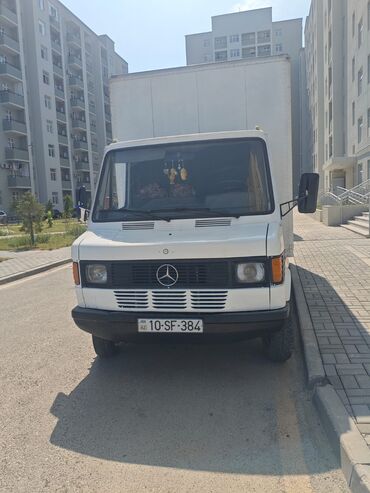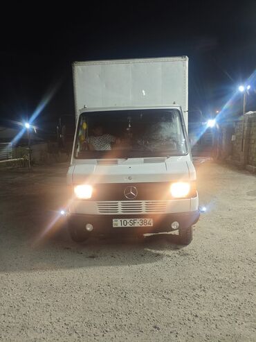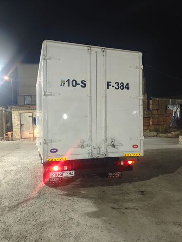 Mercedes-Benz yük furgonu - Korpus: ağ rəng, ön hissədə Mercedes ulduz emblemi, ikitərəfli sürgülü yan qapılar və arxa qoşa qapı - Nömrə: AZ 77-QK-603 - Salon/yük bölməsi: geniş və hündür yük sahə...