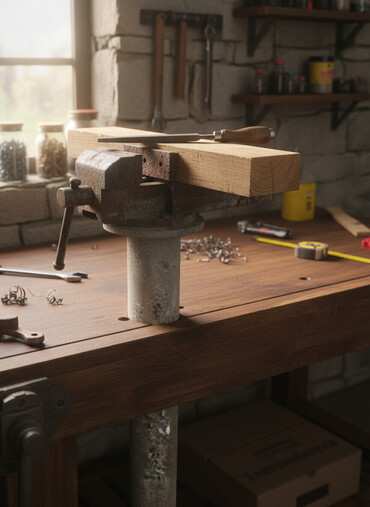 Metall üçün dəzgah mengeni (skrup) – ağır çuqun/gözlü polad gövdə, dişli vint mexanizmi ilə. İri ölçülü iş parçasını bərkidib emal etmək üçün uyğundur.