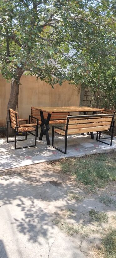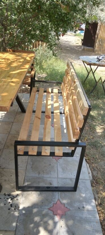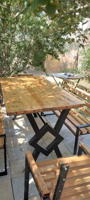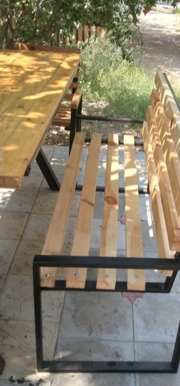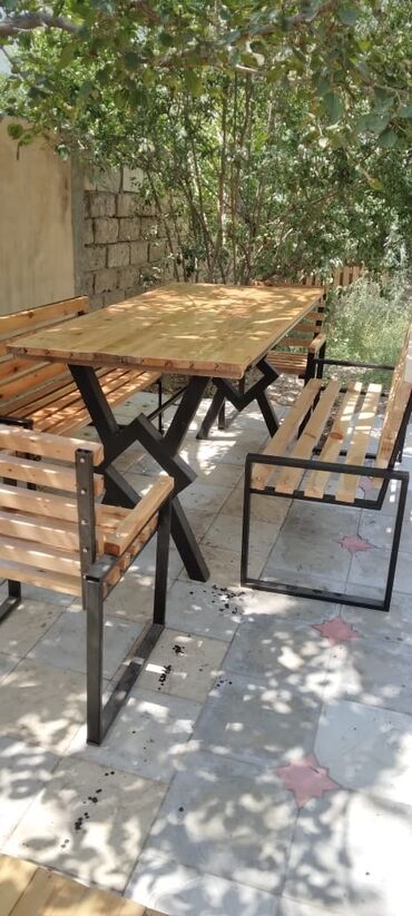 Həyət/bahçe üçün taxta stol və iki skamyadan ibarət dəst "kampılekt 250azn" - Dəst tərkibi: 1 ədəd düzbucaqlı stol, 2 ədəd arxalı skamya (üz-üzə yerləşdirilə bilən). - Material: metal karkas + tax...