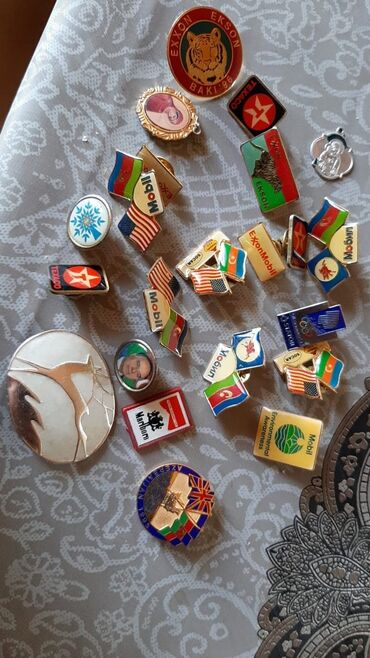 Korporativ neft-qaz brendləri və tematik xatirə nişanlarını toplayanlar üçün geniş və rəngarəng seçim.