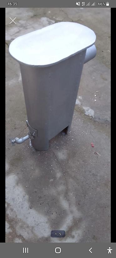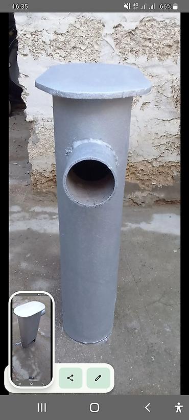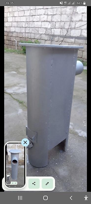 Məhsul: Metal soba – odun/kömürlə işləyən, tüstü borusu çıxışı olan vertikal tip.
