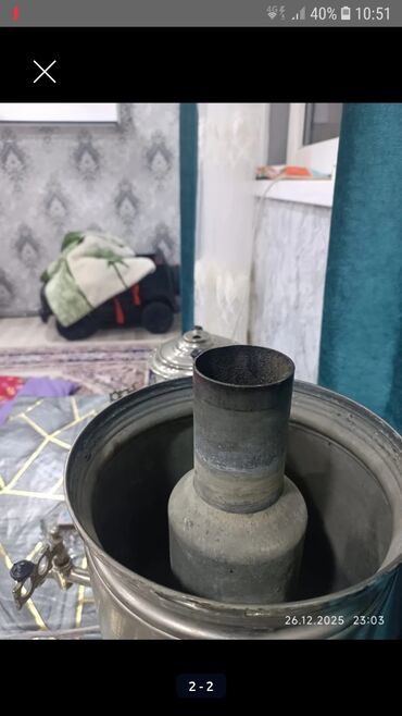 Od samavar 7lt rus istehsal hec bır problemi yoxdur.1980 illerin cox az işlenib seliqeli saxlanlb mis latun metal. – klassik kömür/odunla işləyən model.