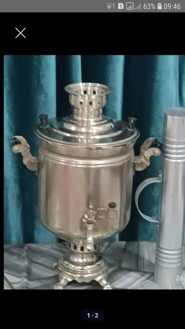 qedim 0d samavar rus istehsal hec bır problemi yoxdur.1970 iller 5 lt su tutur. Klassik köhnə tip samovar - Material: metal (xrom/nikel rəngli korpus) - Yanacaq tipi: kömür/odunla işləyən (kömü...