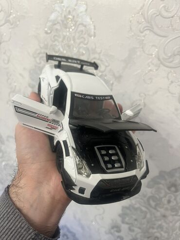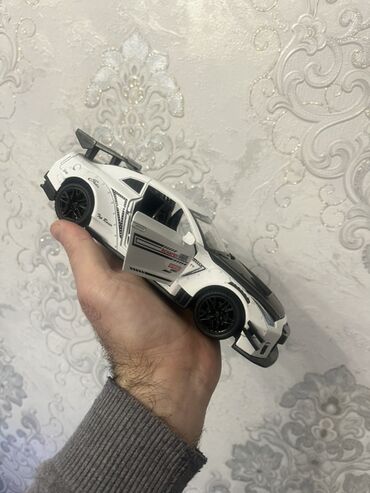 Metal/kötük ərintisindən hazırlanmış sport avtomobil oyuncağı (koleksiya modeli). Xüsusiyyətlər: - Korpus: ağ-qara rəng sxemi, aerodinamik body-kit, böyük arxa spoiler - Qapılar açılır (iki tərəfl...