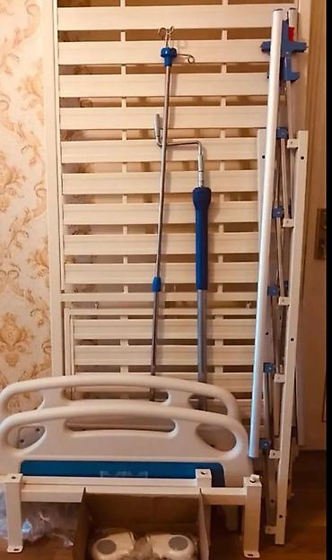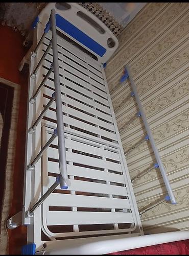 Tibbi çarpayı təcili satılır Mexanikidir baş hissəsi qalxıb endirilə bilir rahatlıqla Yenidir istifadə olunmayıb pakovkada Sistem asmaq üçün ştativi və qalxmaq üçün tutacağı var Baş hissə 70 75 d...