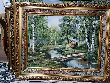 - Yağlı boya üslubunda işlənmiş, yüksək detal və dərinlik effektinə malik təbiət mənzərələri: meşə, çay kənarı, şəlalə və dağ panoramaları.