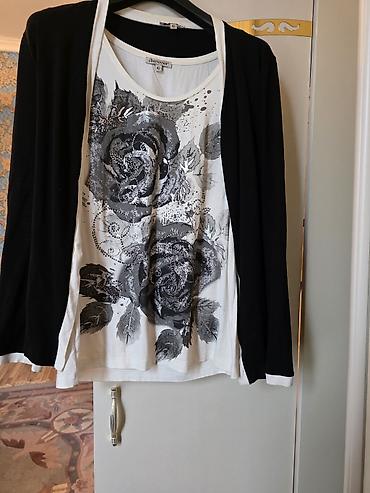 - Qara kardiqan, içində ağ əsaslı, gül printli və parıltılı detalı olan köynək