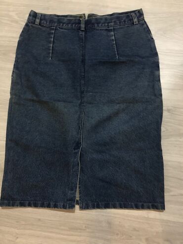 Açıq mavi rəngdə, uzun, cins ətək. Öndən yarıqlı dizaynı ilə hərəkət
