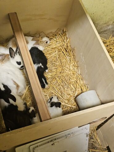Qeyd: Şəkillərdə bala dovşanların yaşadığı taxta bölmə və giriş qapağı görünür. İstəyə görə eyni şəraitdə böyüdülən müxtəlif rəng və naxışlarda balalar mövcuddur.