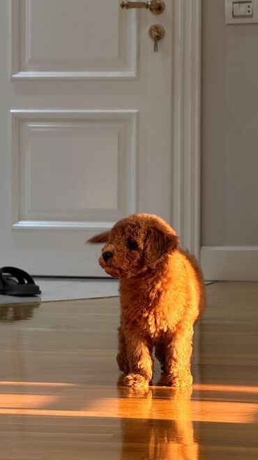 Miniatür pudel tipli balaca it - Rəng: açıq qızılı/şam relifi - Tükləri: sıx, qıvrım, hipoallergen quruluş; az tökülür, mütəmadi kəsimə uyğundur - Ölçü: kiçik, mənzil və ev şəraitinə uyğun - Xarakt...