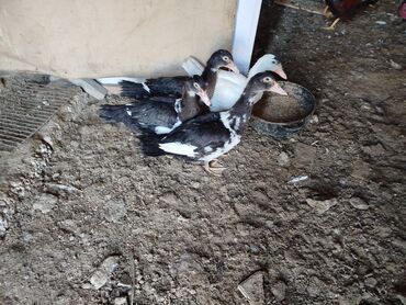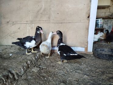 Məhsul: Ördəklər (3 ədəd) Təsvir: - 2 ədəd muskovi (hind) ördək – biri tam qara-yaşıl parıltılı, biri qara-ağ ləkəli. - 1 ədəd klassik ev ördəyi – qəhvəyi xallı, ağ boyunlu. - Həyət şəraitində sax...