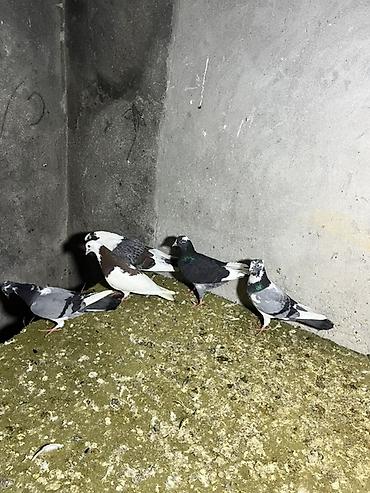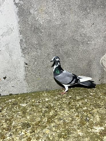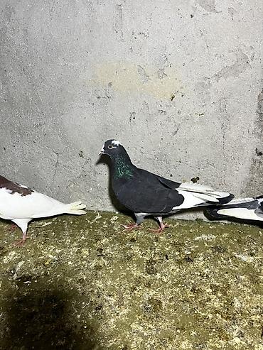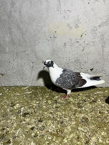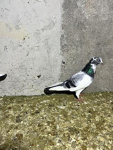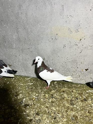 Ağ-qəhvəyi rəngli göyərçin - Bədən rəngi ağ, kürək və qanad üstündə qəhvəyi ləkələr - Uzun quyruqlu, qırmızı pəncəli - Həyətdə saxlanılıb, digər göyərçinlərlə yanaşı görünür - Ev quşu kimi baxıma u...
