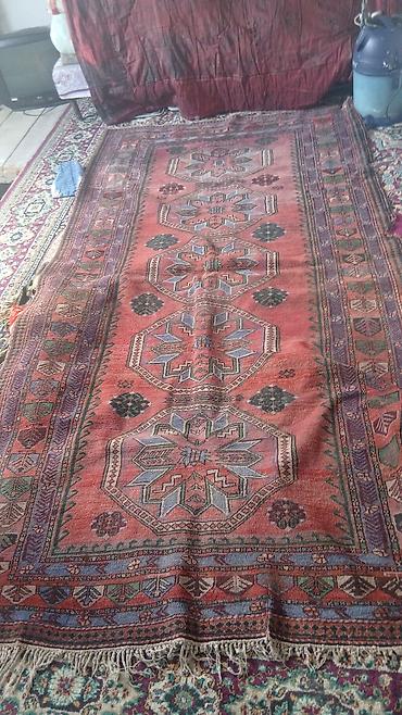 - Şərq üslubunda əl işi xalça: Mərkəzdə ardıcıl həndəsi medalyonlar, kənarlarda çoxzolaqlı bordür. Qırmızı, tünd yaşıl və mavi tonlar üstünlük təşkil edir. Ucları saçaqlıdır. Otaq, zal və ya dəhliz üçün dekorativ xalça kimi istifadə oluna bilər.