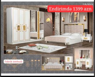 - Komplekt: böyük şkaf (güzgülü sürgülü qapı), çarpayı, 2 ədəd tumbə, güzgülü makiyaj masası