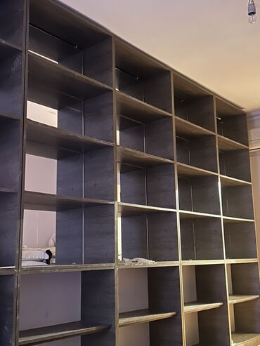 Divar tipli modul rəf sistemi 4 rəfdən ibarət 4 ədəd şkafdır. Biri 30 AZN - Material: ağ rəngdə laminat/MDF tipli taxta panel - Konstruksiya: 4 və 6 bölməli variantlar (kare formalı hüceyrələr); ...