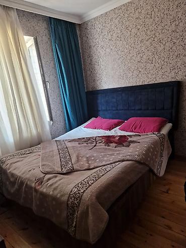 - Çarpayı: yumşaq samt başlıq (tünd mavi rəng çalarında), taxta teksturalı karkas. Aşağı hissə ilə ahəngdar dizayn.