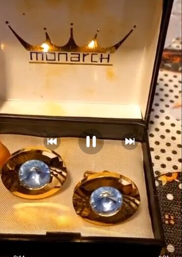 Swarovski kişi manjet düymələri - Brend: Swarovski (orijinal, loqolu) - Material: gümüşü tonlu metal ərintisi - Bəzək: iri, dərin mavi rəngli Swarovski kristalları - Forma: dairəvi ön hissə, parla...