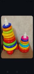 - Rəngli üzük piramidası – 2 ədəd. Fərqli ölçülü iki qüllə, müxtəlif rəngli halqalarla. Halqalar asan tutulan, hamar səthli plastikdən hazırlanıb. Uşaqlarda motorika, rəng və ölçü anlayışını inkişaf etdirmək üçün uyğundur.