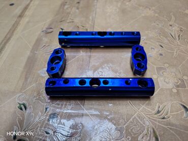 - Alüminium mavi montaj relsləri (4 ədəd hissə): Silindrik profilli, müxtəlif diametrli yivli deliklərə malikdir. Dəstdə 2 uzun rels və 2 ədəd ucluq blok var. Universal montaj və özəlləşdirmə üçün, müxtəlif əlavə detalları, konsolları və ya aksesuarları bərkitməyə uyğundur.
