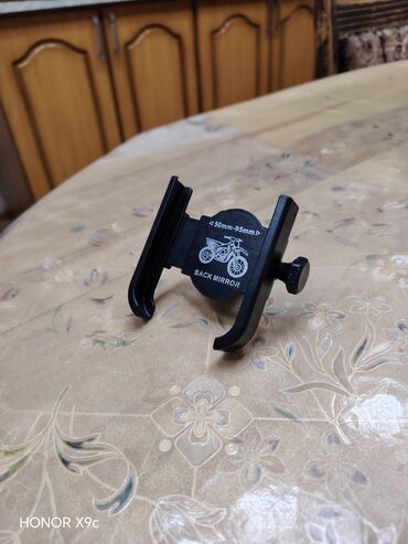 - Telefon üçün motosiklet qolu tutacağı: “BACK MIRROR” nişanlı, 50 mm–95 mm eni olan telefonları sıxaraq saxlayır. Yan tərəfdən vintlə sıxma mexanizmi var. Arxa güzgü və ya boru tipli baza üçün nəzərdə tutulmuş montaj hissəsi ilə işləyir.