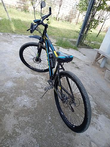 Şəhər içi gedişlər və yüngül off-road üçün tam funksional komplekt: amortizator, disk əyləclər, 29” təkərlər və lazımi aksesuarlar artıq üzərindədir. Rəng: qara-mavi-sarı.