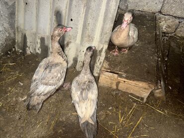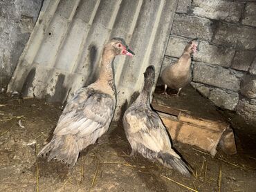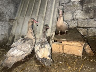 Muscovy (hinduska) ördəkləri – 4 baş - Növlər: Muscovy/hinduska. - Rənglər: ağ, qara-ağ xallı və qəhvəyi-ağ qarışıq. - Say: 4 baş birlikdə. - Sakit xarakterli, həyət şəraitinə uyğundur, otla...