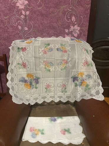 - Ölçülər: fotolarda göstərilən ölçülü orta formatlı süfrələr və uyğun yol/parça hissələri (təxmini orta ölçülü masa və komodlar üçün).