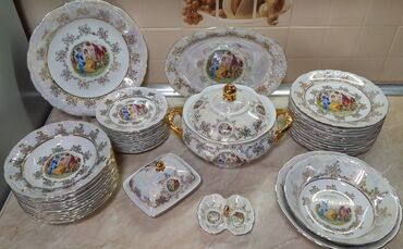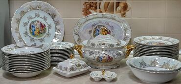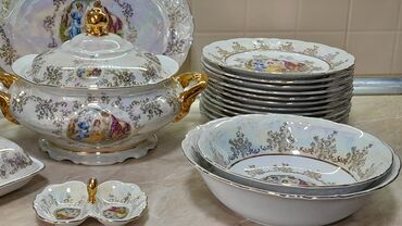 Çexiyanin 12nəfərlik boşqab dəsti.17və 19sm.boşqablar.6əfəd böyük dərin boşqablar.4ədəd dördkünc aş buludları və 4ədəd aş qarası üçün qablar.Təzədi ,qutudan acılmayıb.Dördkünc böyük buludların biri...