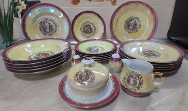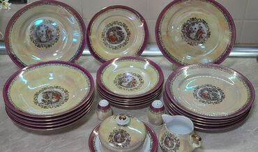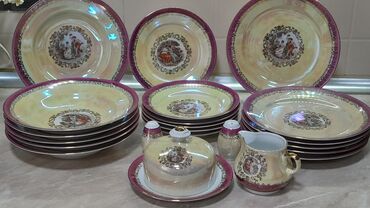 Qırmızı-qartal qızılı ornamentli porselen süfrə və çay süfrəsi dəsti Auratic markasi 12 person obedni ve 12 person cayni servis Birlikde satilir - Material: Yüksək keyfiyyətli porselen - Dizayn: P...