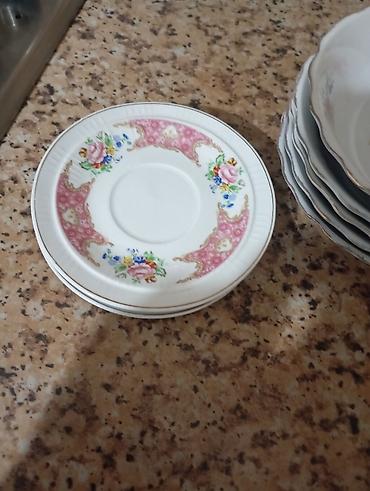 - Komplekt: müxtəlif ölçülü yemək və desert boşqabları, həmçinin fincanaltı üçün saucer tipli kiçik boşqablar (şəkillərdə göründüyü kimi)