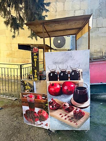 Nar şirəsi üçün küçə köşkü/stendi - Material: ağac karkas, üstü