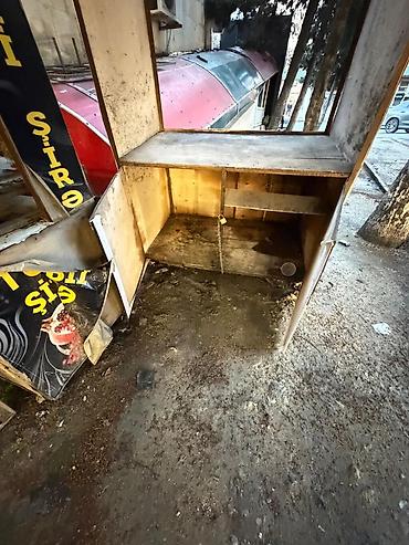 - Ön hissə: satış pəncərəsi/vitrin üçün açıq bölmə, iş səthi kimi istifadə oluna bilən taxta masa.
